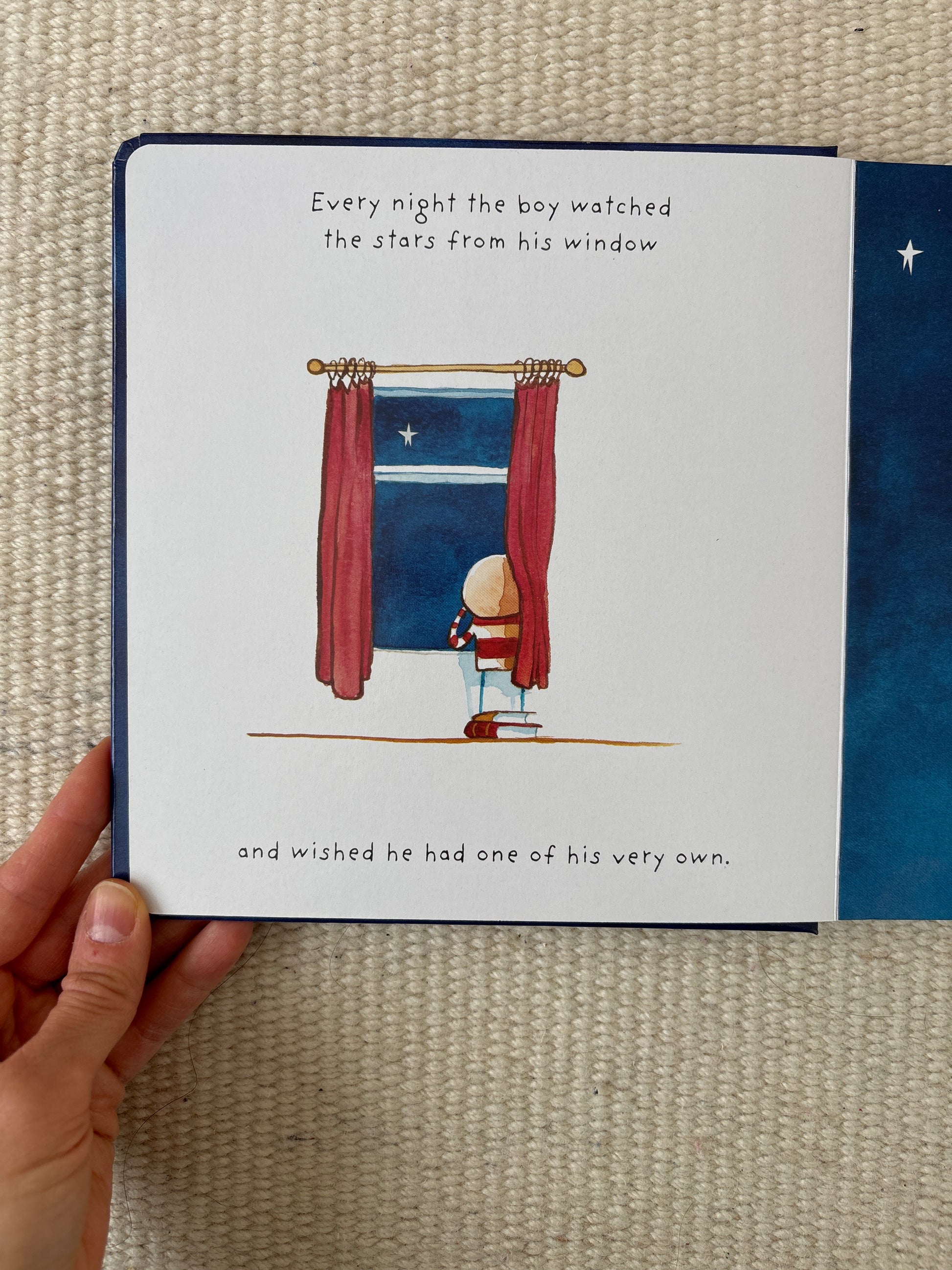 There once was a boy who loved stars so much that he wished he had one of his very own. Every night he watched the stars in the sky from his bedroom window and dreamed of how he could be their friend and how they could play hide-and-go-seek together.