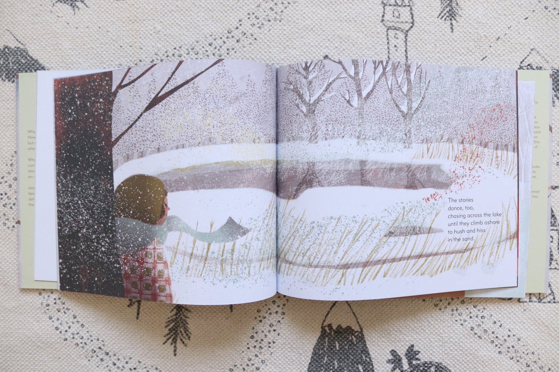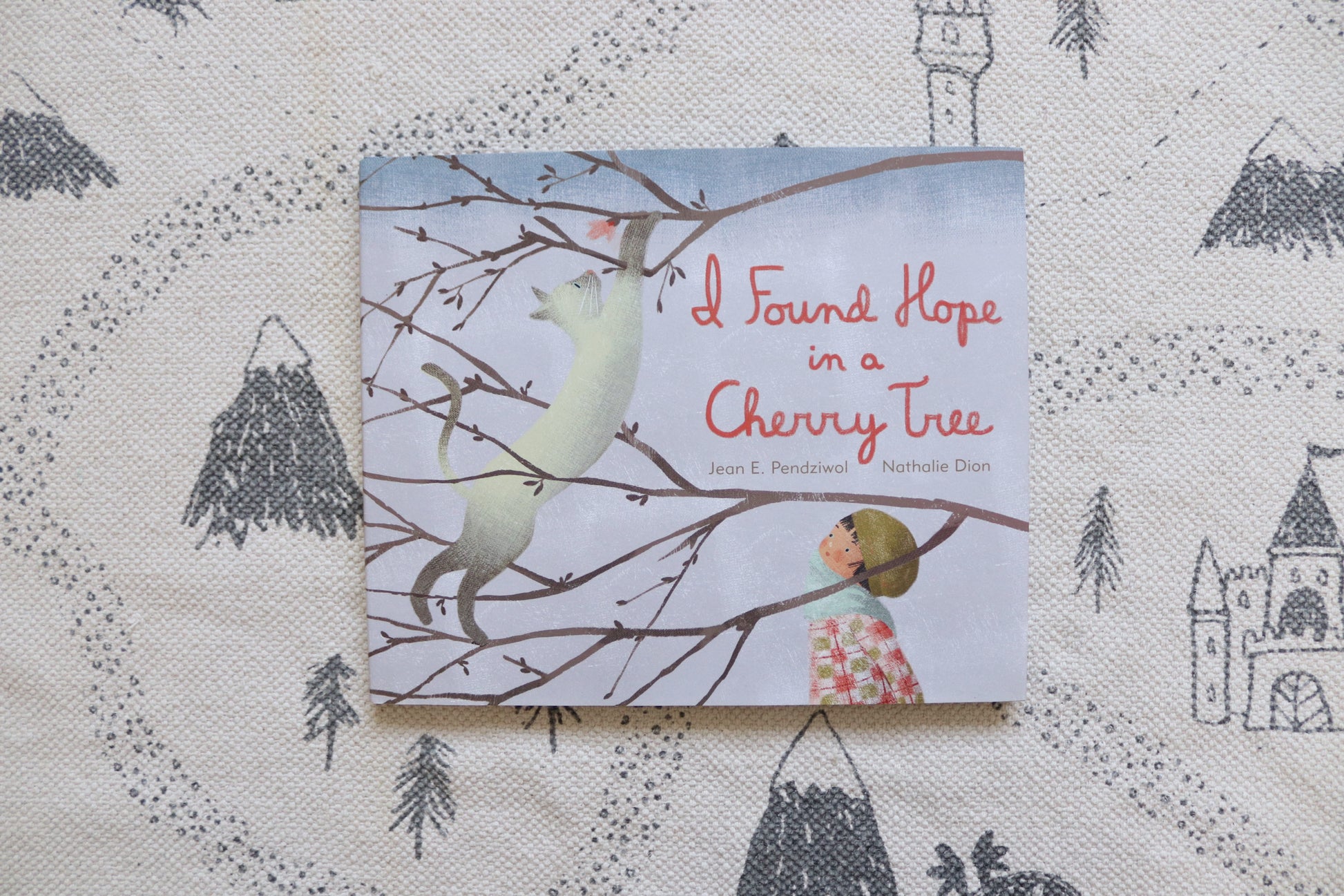 The child in this story observes the sun by playing with her shadow, though sometimes it disappears. She listens to the wind tell stories, even when it howls like wolves. She tastes snowflakes — sometimes sweet and delicate; other times sharp on her cheeks. And finally, she finds hope in the buds on a cherry tree that survive through the winter to blossom in spring.