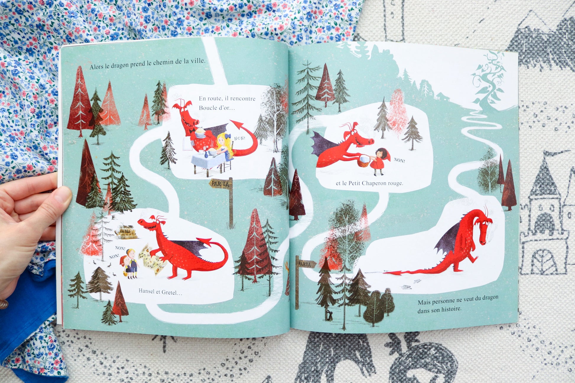 Un dragon se sauve de son conte, vexé d'être toujours le méchant. Il voudrait, pour une fois, être le héros. Il rencontre un des trois petits cochons, Boucle d'or, Hansel et Gretel, et le Petit Chaperon rouge, mais aucun d'eux ne veut d'un dragon dans son histoire.Puis, il arrive au pied d'un haricot magique, et se fait repérer par un géant. Il n'y pas de dragon dans cette histoire-là non plus, mais le géant s'en moque.Maintenant que le géant a rejoint les contes, tous les personnages veulent que le dragon devienne le héros de leur histoire.