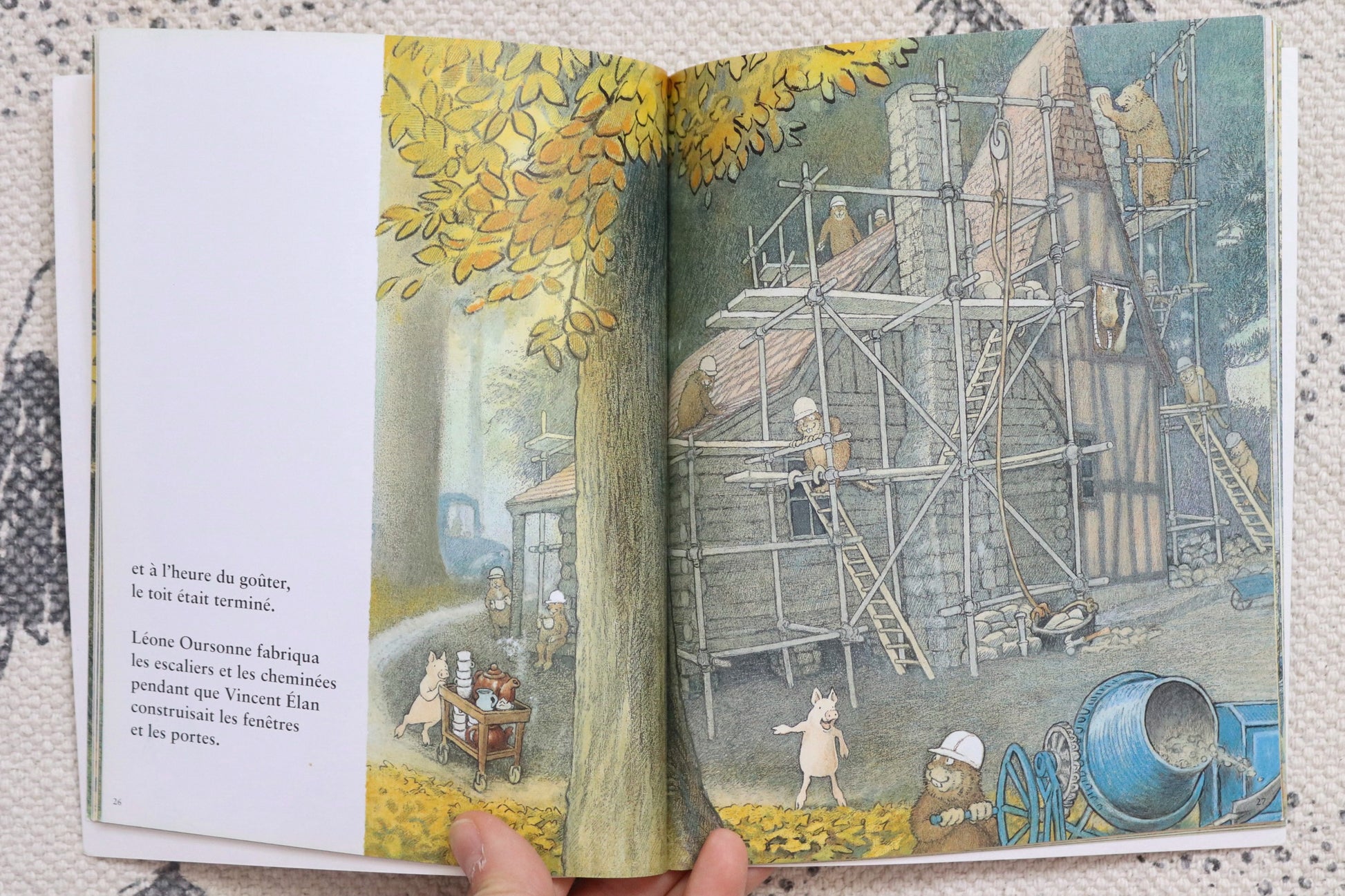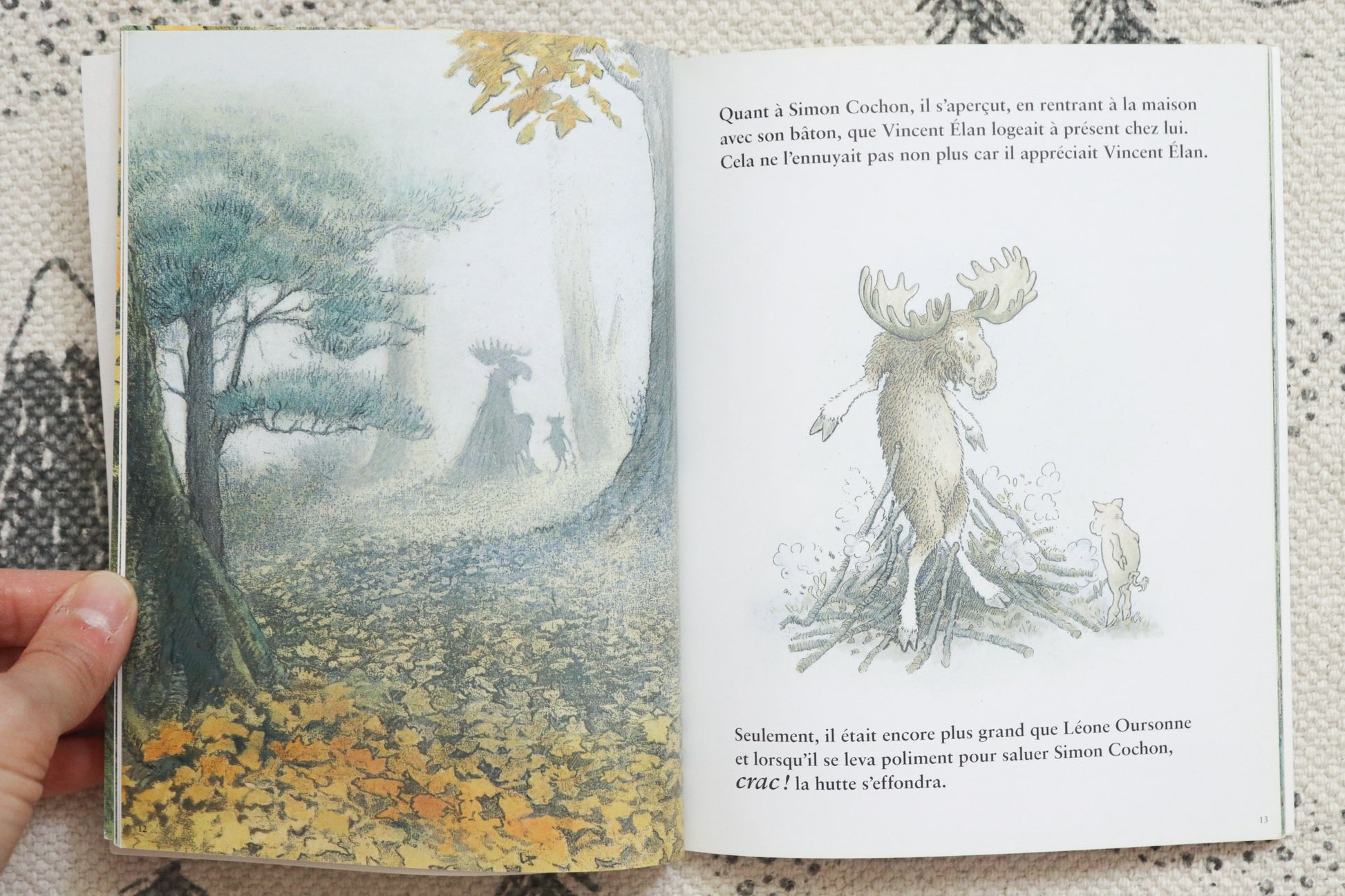 Dans une tanière au fond des bois habitait Suzie Truie. Juste à côté, dans une petite hutte, vivait Simon Cochon. Un jour, en rentrant de promenade, ils découvrent que l’ours et l’élan ont voulu emménager chez eux. Leurs maisons sont écrabouillées ! Ils décident alors de construire une maison où ils pourraient vivre tous ensemble. Vincent Élan téléphone à l’équipe des Castors…