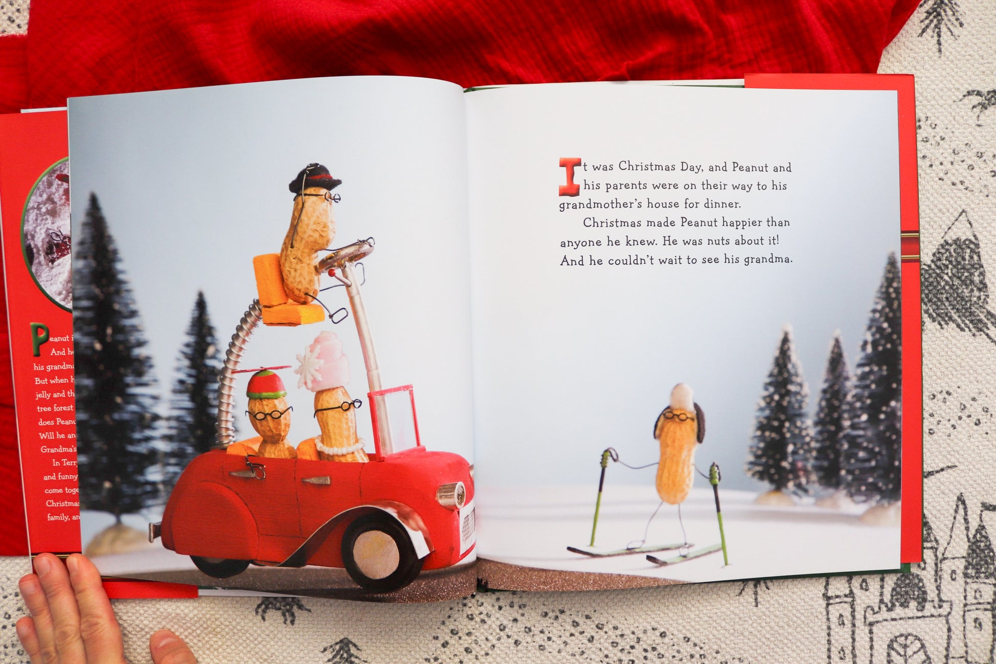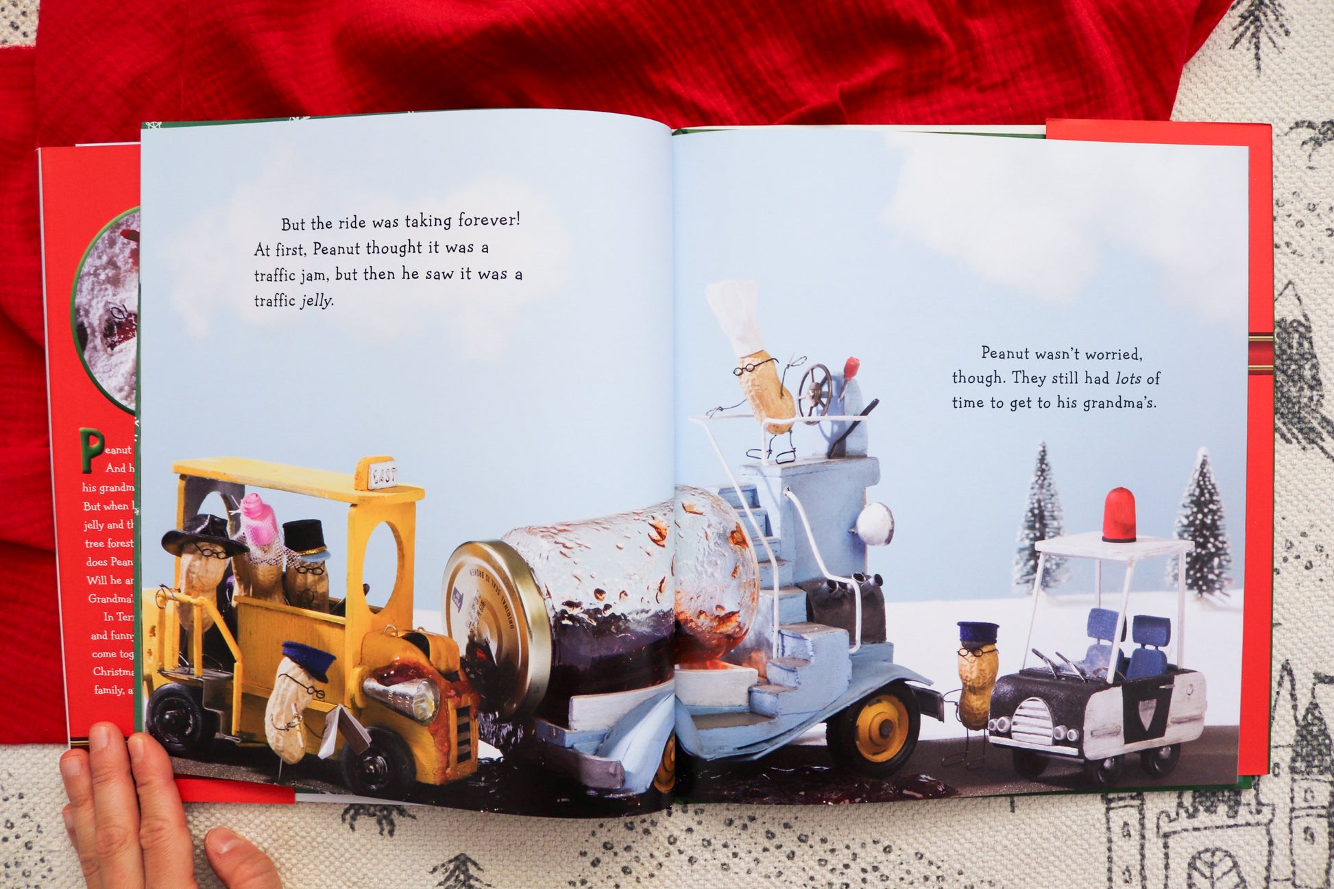 Peanut is going over the river and through the woods to his grandmother's house for Christmas, but getting there is a food-filled adventure for this little nut! First he gets stuck in a traffic jam (make that a traffic jelly), then the bridge is closed so he has to take a (gravy) boat across the river, where he gets lost in a forest of (cookies shaped like) Christmas trees! But while the delays dismay his friends and family, Peanut embraces his role as the Merry Christmas Nut to cheer them up.