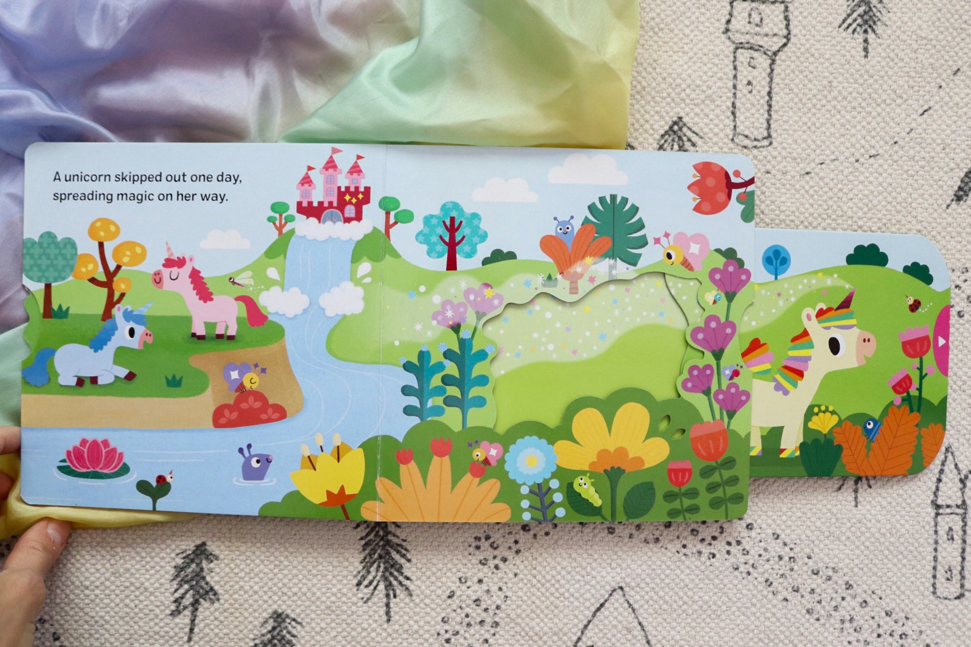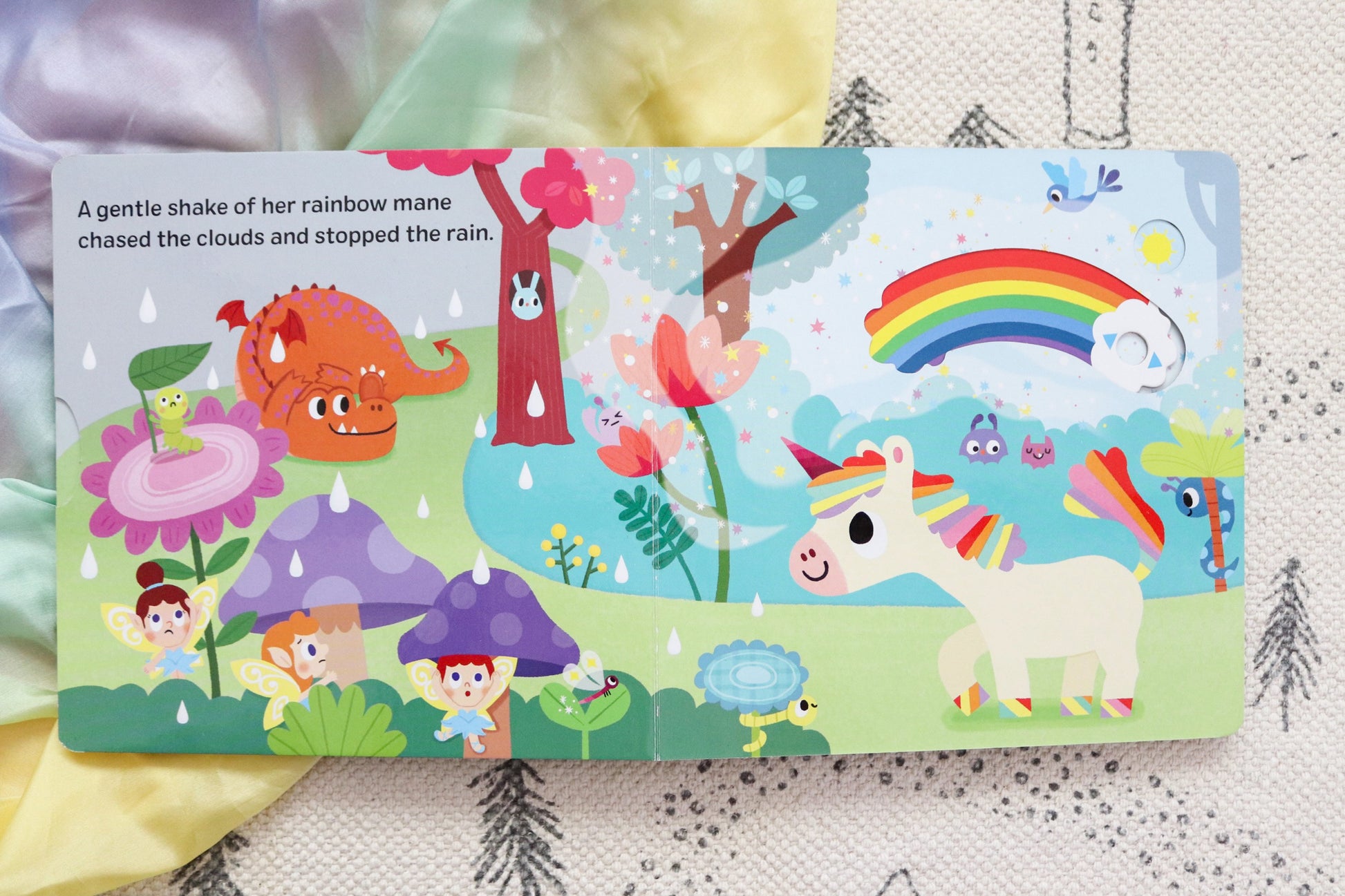 My Magical Unicorn takes readers on a truly fantastical journey with a beautiful unicorn. Young children can join the unicorn as she spreads her magic across the land, meeting many other enchanting creatures along the way. As they push, pull and slide the mechanisms, they can take part in the unicorn's adventure, from helping a poorly fairy to enjoying a slide down a waterfall!