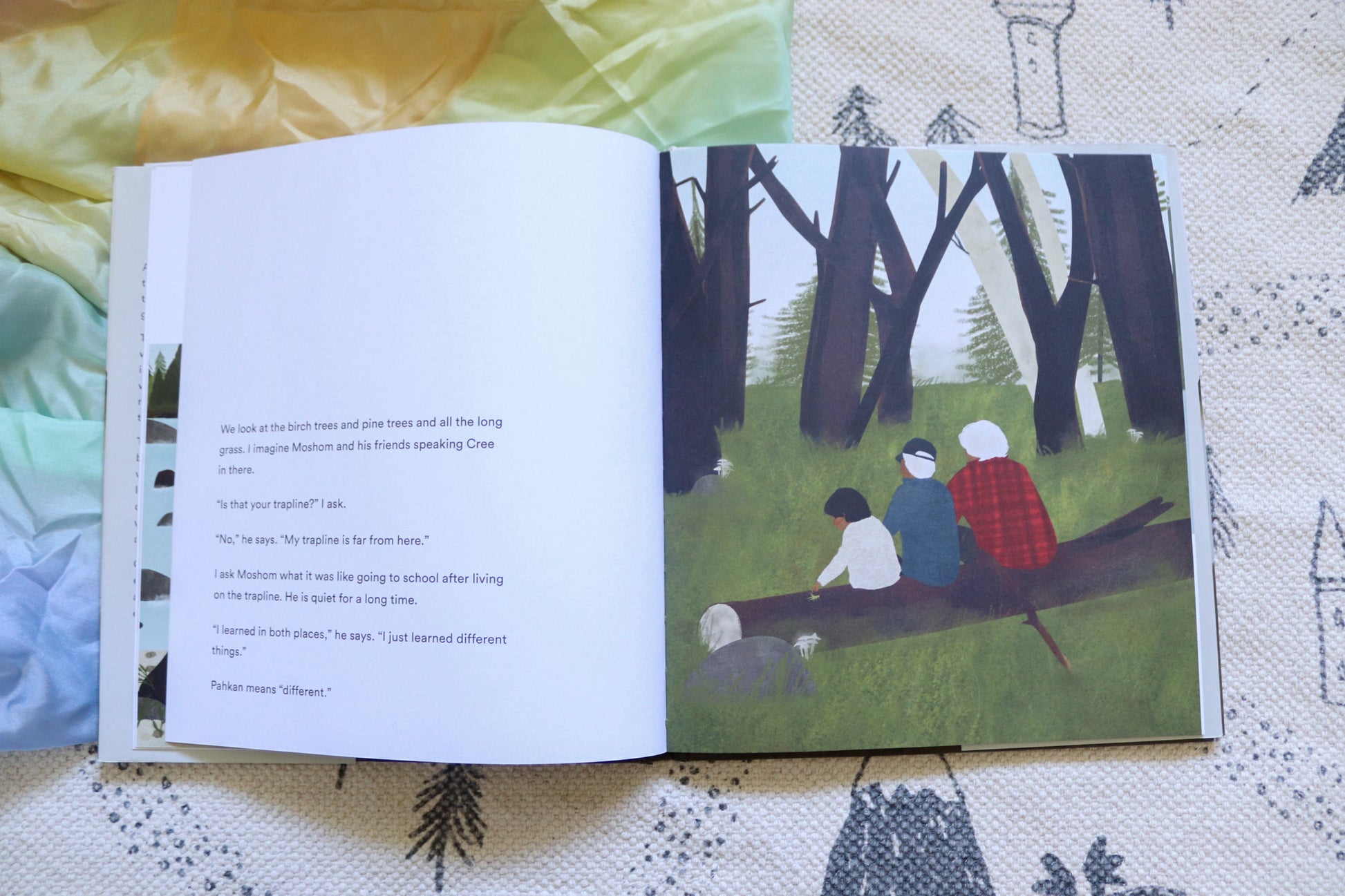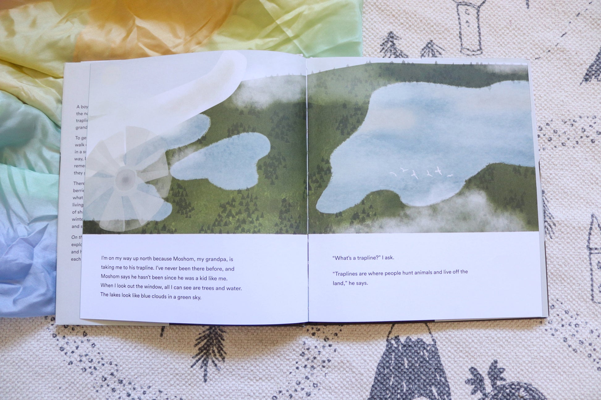 A boy and Moshom, his grandpa, take a trip together to visit a place of great meaning to Moshom. A trapline is where people hunt and live off the land, and it was where Moshom grew up. As they embark on their northern journey, the child repeatedly asks his grandfather, "Is this your trapline?" Along the way, the boy finds himself imagining what life was like two generations ago -- a life that appears to be both different from and similar to his life now. This is a heartfelt story about memory, imagination and intergenerational connection that perfectly captures the experience of a young child's wonder as he is introduced to places and stories that hold meaning for his family.