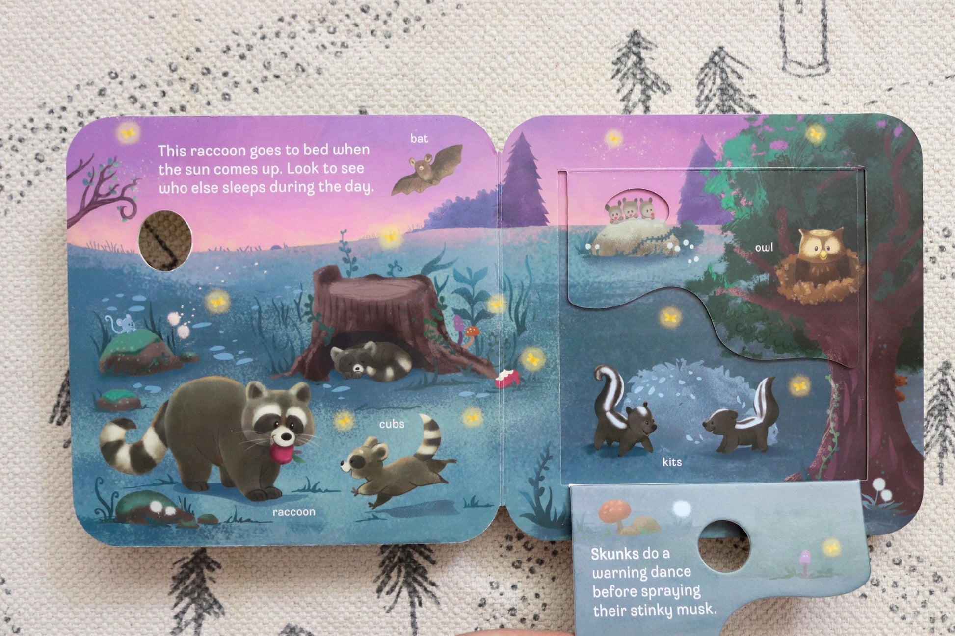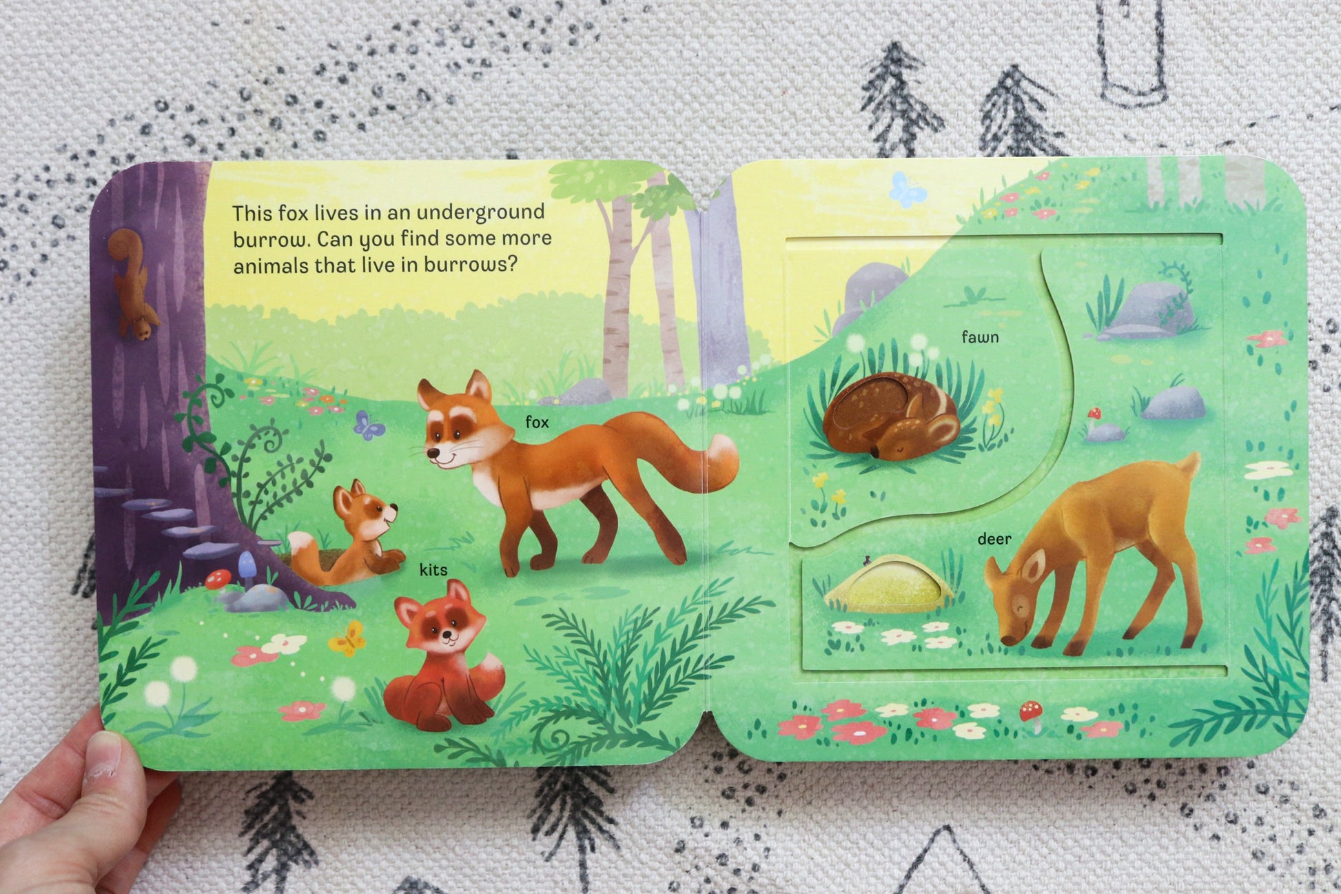 Meet all the friendly animals in the forest in this lively, interactive Peek-a-Flap sturdy board book! Little ones will love navigating through every animal-themed page filled with fun facts, new vocabulary words, and surprises found under sturdy lift-a-flaps while learning all about adorable fuzzy forest animals and their habitats! Join foxes, raccoons, deer, bears, squirrels, skunks, and more as they gather food, play, and show you around their forest homes! Durable pages and chunky flaps are perfect for little exploring hands, which also help strengthen hand-eye coordination and fine motor skills. A lively, educational forest animal introduction designed to entertain and engage curious little readers. A must for little animal lovers!