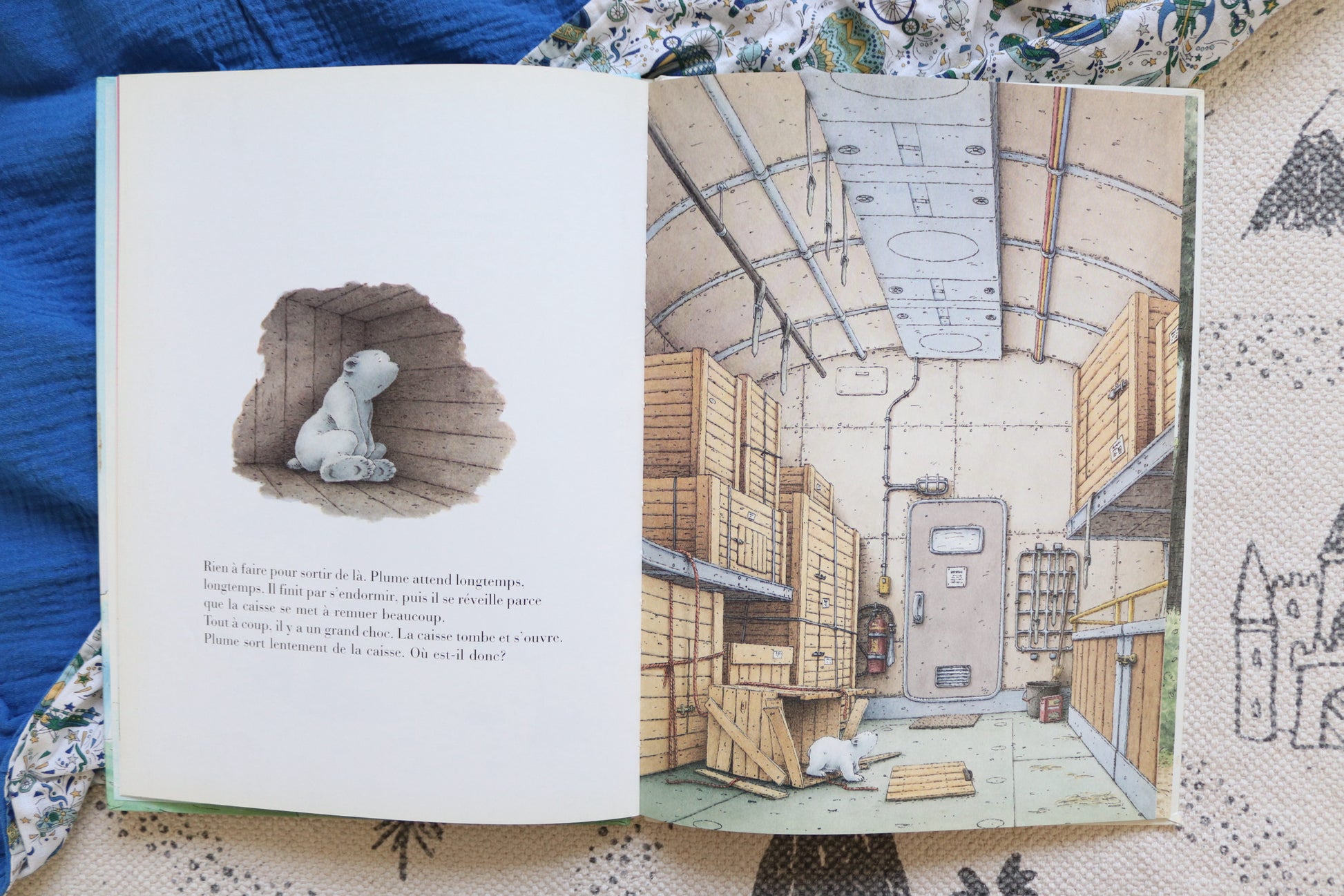 Plume, le petit ours blanc, s'ennuie. Un jour, alors qu'il se promène, attiré par une caisse, il rentre et se fait enfermer. Ensuite tout va très vite, il est emmené en avion et tombe dans un zoo. Mais avec l'aide d'un morse et en compagnie de Béa, une oursonne brune, ils s'échappent. Le voyage de retour au pôle Nord sera long et périlleux.