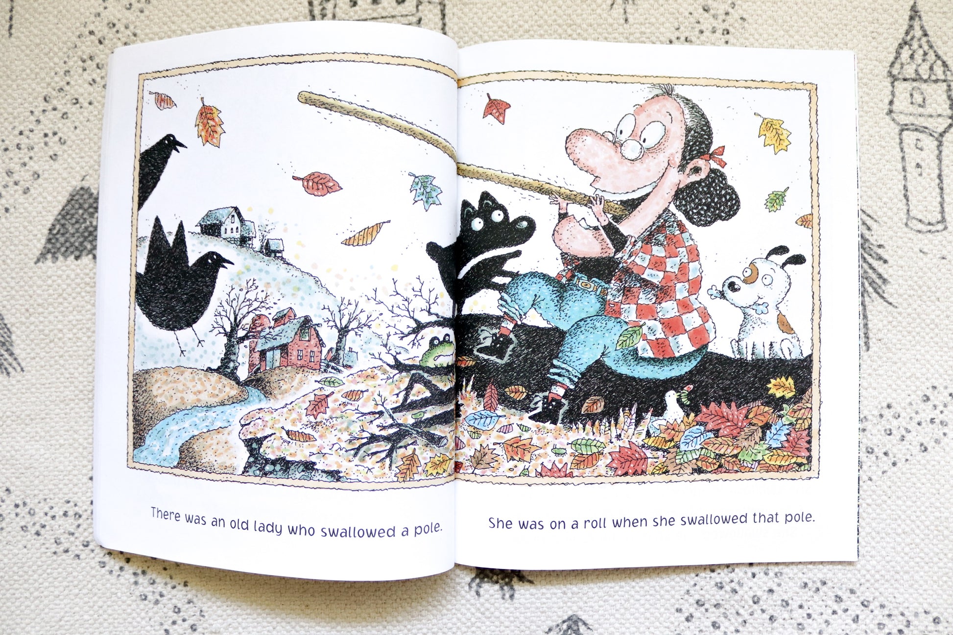 An autumnal twist on the classic song from the bestselling There Was an Old Lady series for kids! You’ll never guess what she’ll swallow next! There was an old lady who swallowed some leaves. I don't know why she swallowed those leaves. Perhaps she'll sneeze! The Old Lady is back and this time she's swallowing some leaves, clothes, a pumpkin, and a rope! Welcome the Fall season with funny illustrations and a spin on a classic rhyme! Also in the There Was an Old Lady series: There Was an Old Lady Who Swallowed Some Books! There Was an Old Lady Who Swallowed a Ghost! There Was an Old Lady Who Swallowed a Bat! and more!